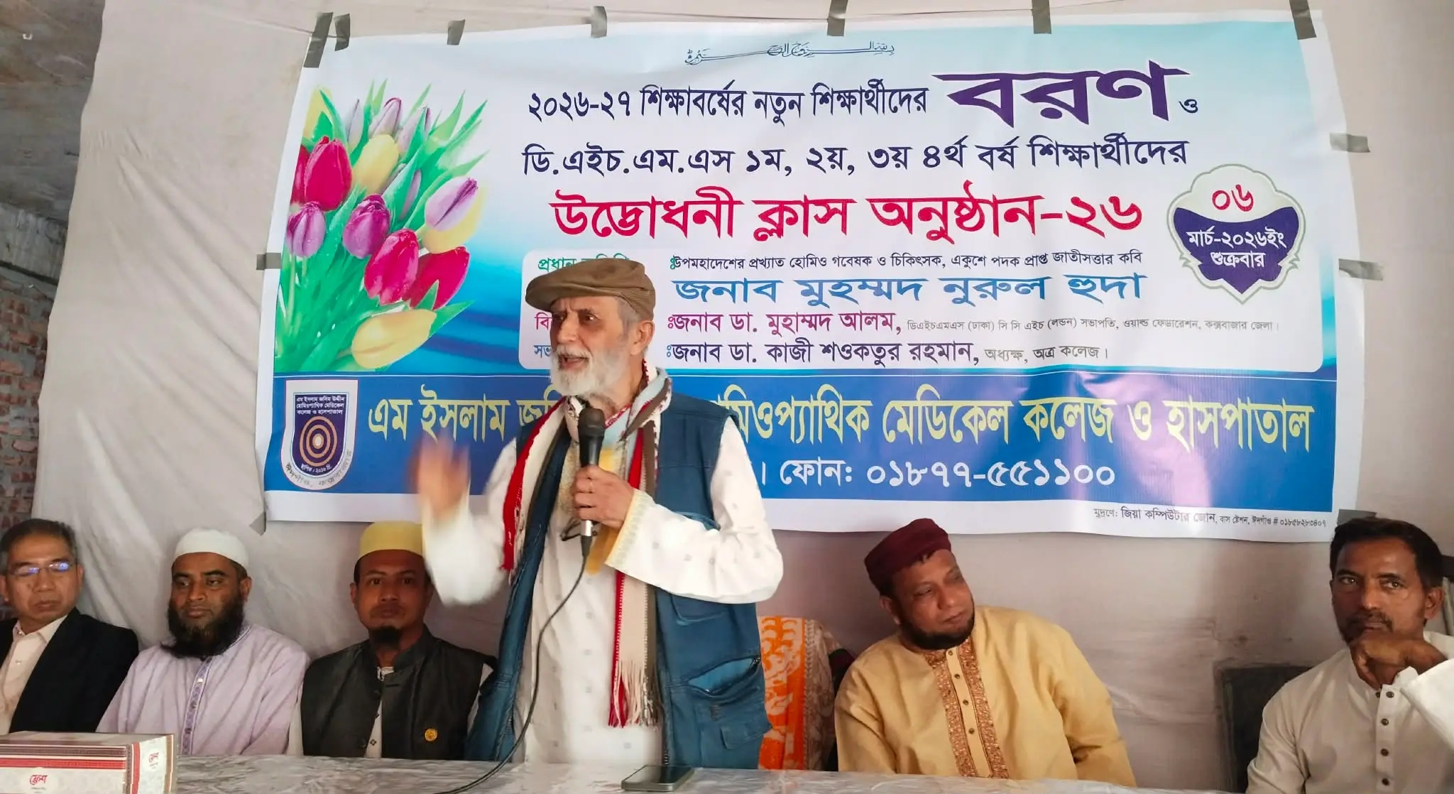 কক্সবাজারের ঈদগাঁওয়ে এম ইসলাম জসিম উদ্দিন হোমিওপ্যাথিক মেডিকেল কলেজে ২০২৬-২৭ শিক্ষা বর্ষের নতুন শিক্ষার্থীদের বরণ ও ক্লাস উদ্বোধন করা হয়েছে।