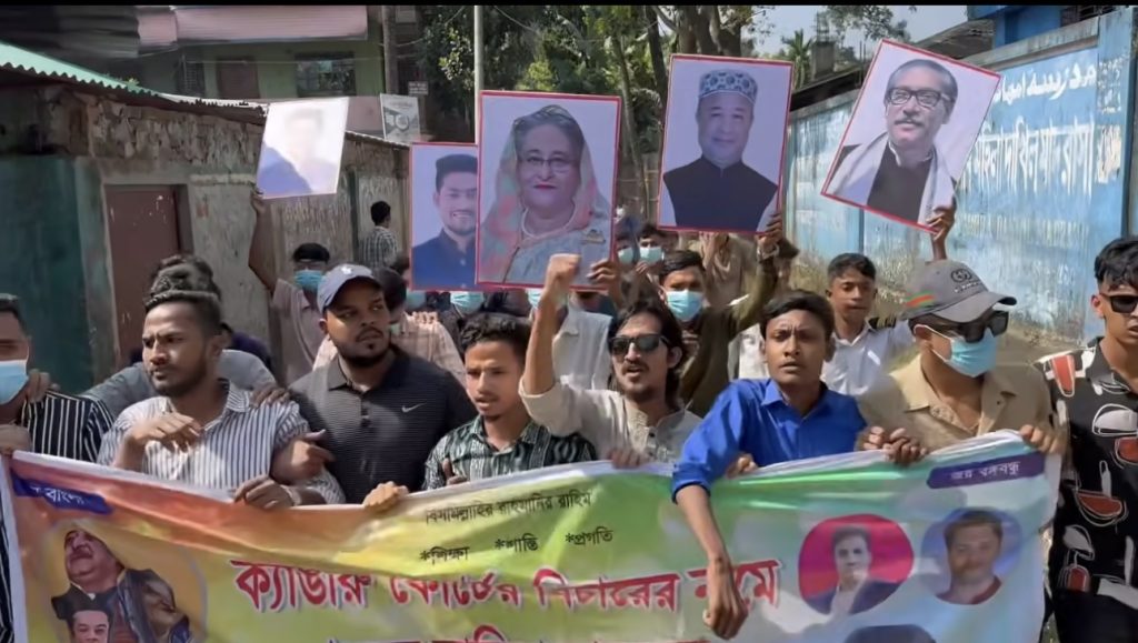 পুলিশ ও ছাত্রলীগের কয়েকজন নেতার সঙ্গে কথা বলে জানা গেছে, চকরিয়া পৌরসভার ৬ নম্বর ওয়ার্ড ছাত্রলীগের সাবেক যুগ্ম আহ্বায়ক ফয়সাল মাহমুদের নেতৃত্বে ‘ক্যাঙারু কোর্টের বিচার মানি না, মানব না’, ‘শেখ হাসিনা আসবে, বাংলাদেশ হাসবে’ লেখা সম্বলিত ব্যানার নিয়ে মিছিল করে ২৫-৩০ জন ছাত্রলীগের নেতা-কর্মী। মিছিলটি মগবাজার সড়ক হয়ে উপজেলা পরিষদের সামনে থেকে ঘুরে মগবাজার গিয়ে শেষ হয়। মিছিলের ছবি ও ভিডিও সামাজিক যোগাযোগ মাধ্যমে ছড়িয়ে পড়লে ছাত্রলীগের নেতা-কর্মীদের আটকে অভিযান শুরু করে পুলিশ। দুপুর একটা থেকে সন্ধ্যা ছয়টা পর্যন্ত তিনজনকে আটক করে পুলিশ।