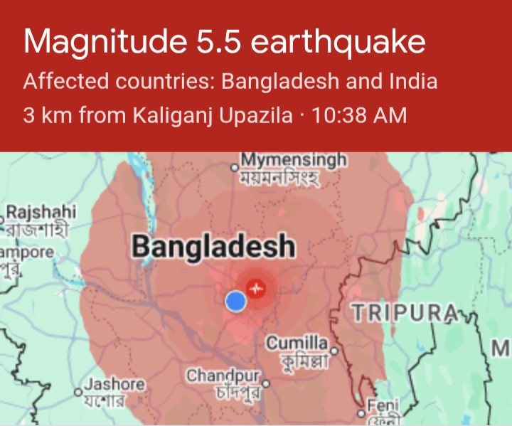 রাজধানী ঢাকাসহ দেশের বিভিন্ন স্থানে ভয়াবহ ভূকম্পন অনুভূত হয়েছে। শুক্রবার (২১ নভেম্বর) সকালে ১০টা ৩৯ মিনিটে এই ভূমিকম্প অনুভূত হয়। এর মাত্রা ছিল ৫ দশমিক ২।
