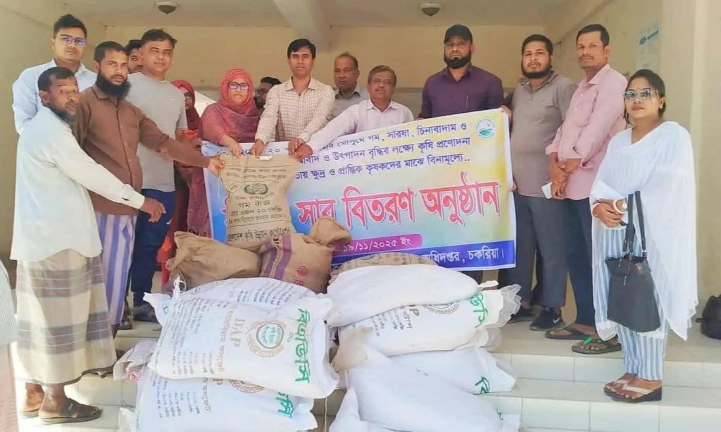 এর অংশ হিসেবে চকরিয়া উপজেলা কৃষি সম্প্রসারণ অধিদপ্তর কর্তৃক ২০২৫-২৬ অর্থবছরে রবিশস্য মৌসুমে কৃষি প্রণোদনা কর্মসূচির আওতায় ৪৩০ জন প্রান্তিক কৃষক-কৃষাণীদের মাঝে বিনামূল্যে সরিষা, চিনাবাদাম ফেলন ও গমের বীজ এবং সার বিতরণ করা হয়েছে।