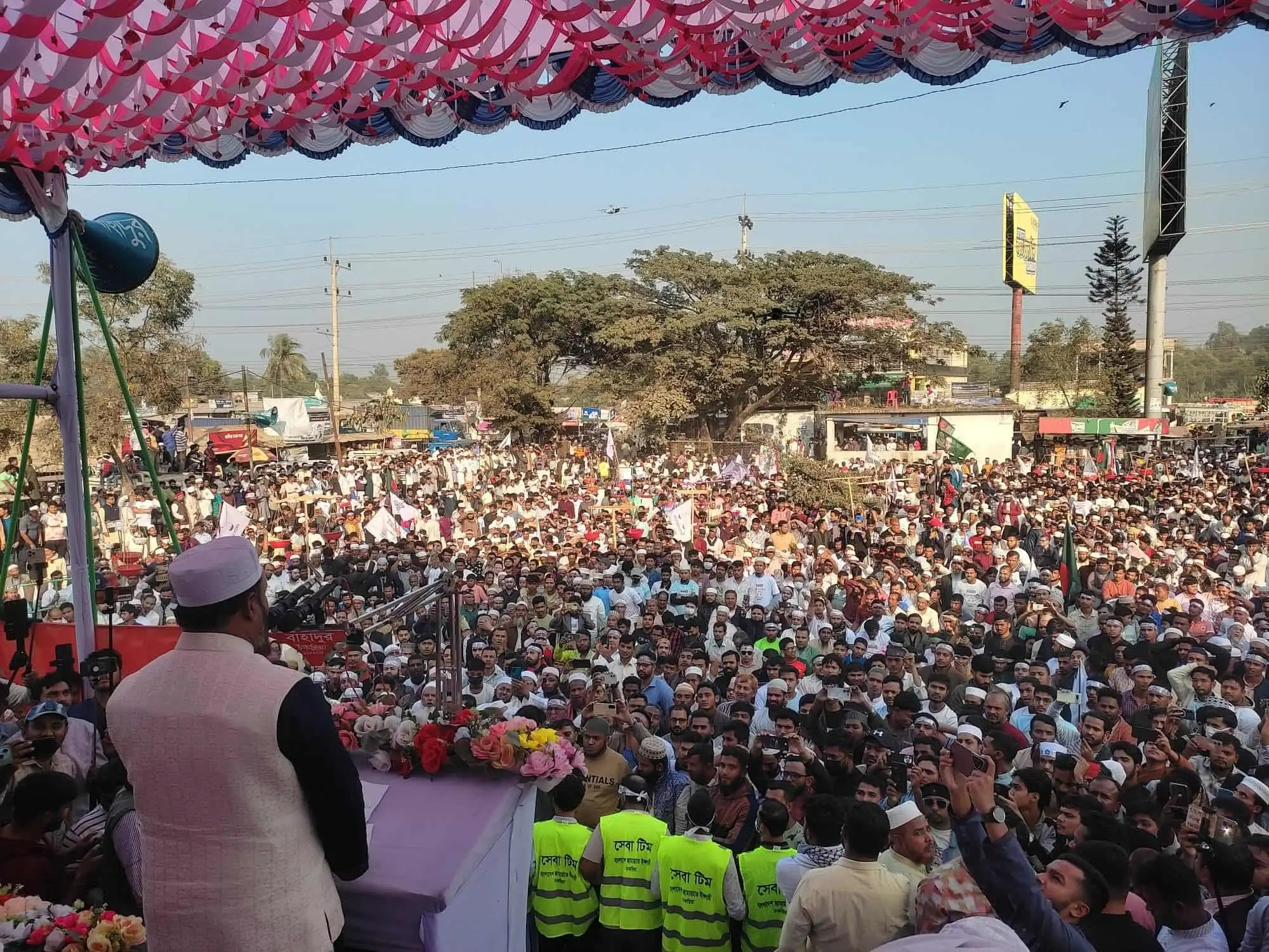 দাঁড়িপাল্লার বিশাল সমাবেশে প্রধান অতিথি মোহাম্মদ শাহজাহান বলেন, সাম্য, মানবিকতা ও কল্যাণমূলক রাষ্ট্র গঠনের লক্ষ্যে ১০ দলীয় জোটের প্রার্থী আব্দুল্লাহ আল ফারুককে বিজয়ী করতে জনগণকে ঐক্যবদ্ধ হতে হবে। তিনি নতুন বাংলাদেশে ‘জুলাই জাতীয় সনদ’কে সাংবিধানিক রূপ দিতে গণভোটে সমর্থন জানানোর জন্য জনগণের প্রতি আহ্বান জানান।